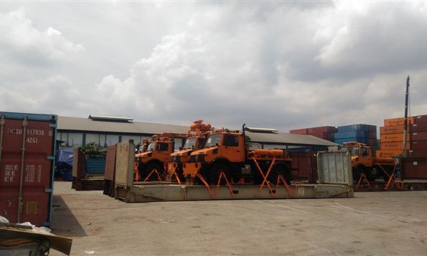 クレーン付きのセルフローダー車の運送