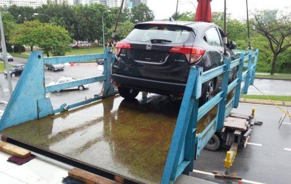 クレーン付きのセルフローダー車の運送